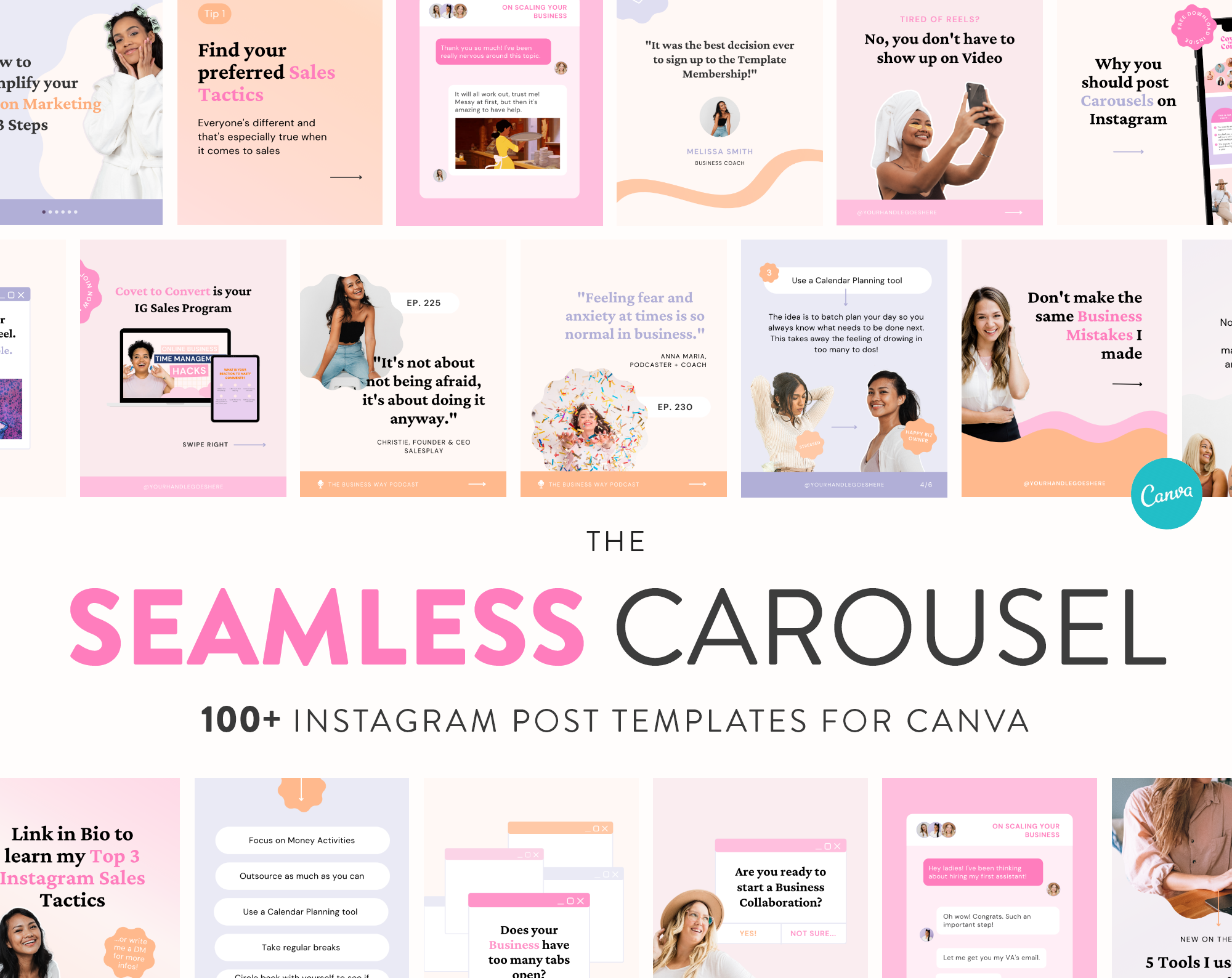 You know what takes 100 hours to finish? Not your Instagram carousels anymore! With our done-for-you Canva templates you create multi-slide posts that educate, engage and entertain – in a few minutes.