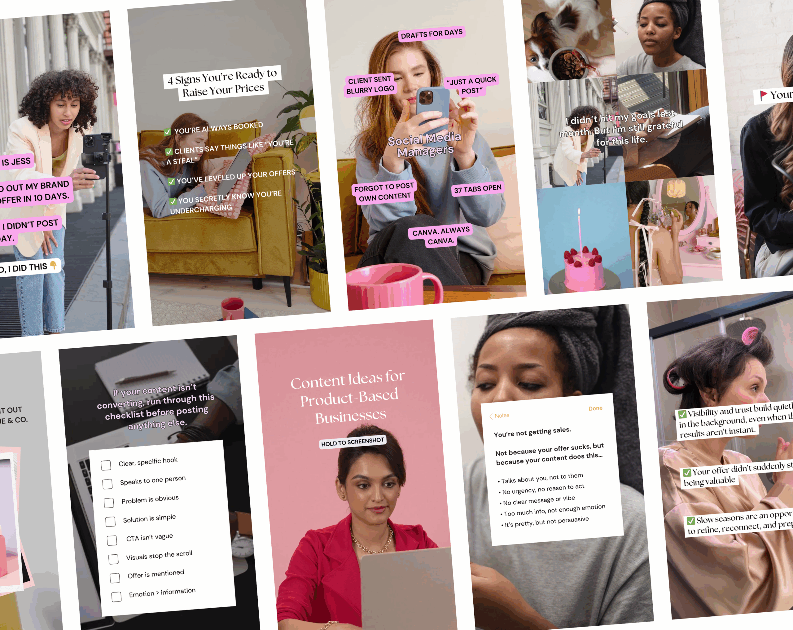 • Lifetime Access to 2,000+ Canva Templates, Content Ideas and monthly new Template Drops
